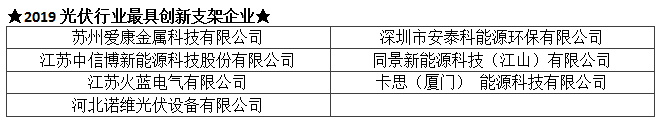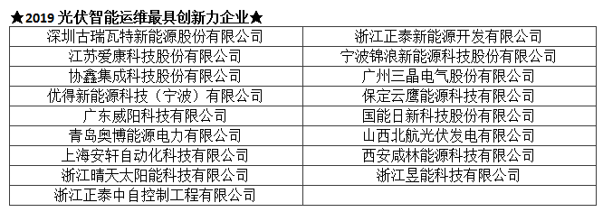 TOP 2019光伏行业创新力企业50强及各单项奖入围企业名单(排序不分先后):